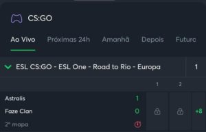 Agora que você já entendeu um pouco mais sobre a mecânica, vai ver que apostar ao vivo em e-Sports é muito fácil. Após o cadastro e com os créditos para apostar online na conta, você deve escolher o jogo que você quer apostar, e em seguida selecionar a aba “ao vivo”, como mostramos na imagem abaixo.