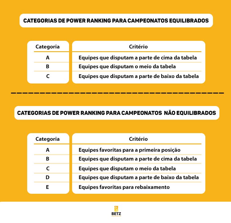 Bom, um power ranking nada mais é do que surgiu um parâmetro em forma de tabela para determinar os melhores times em cada campeonato. Então, de uma maneira prática é útil para uma melhor análise sobre a fase atual de cada time.