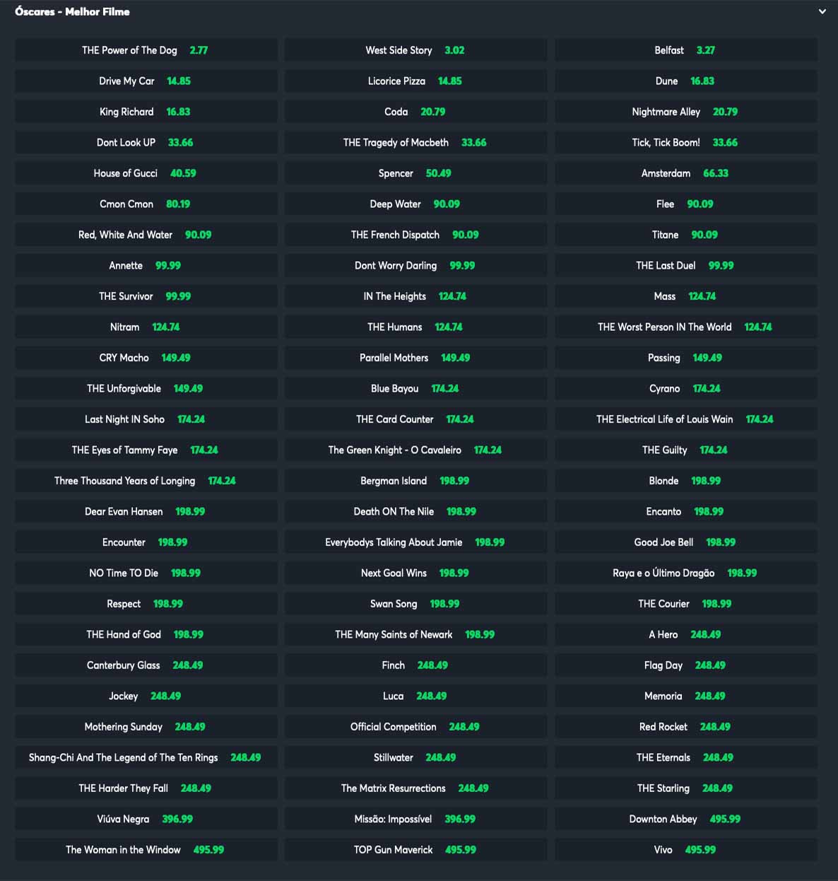 Existem diversos sites de apostas onde você pode apostar no Oscar, mas nós recomendamos sempre o Sportsbet.io. Lá você já pode apostar na premiação e aproveitar as melhores odds do mercado. Veja abaixo as opções mais procuradas pelos apostadores: